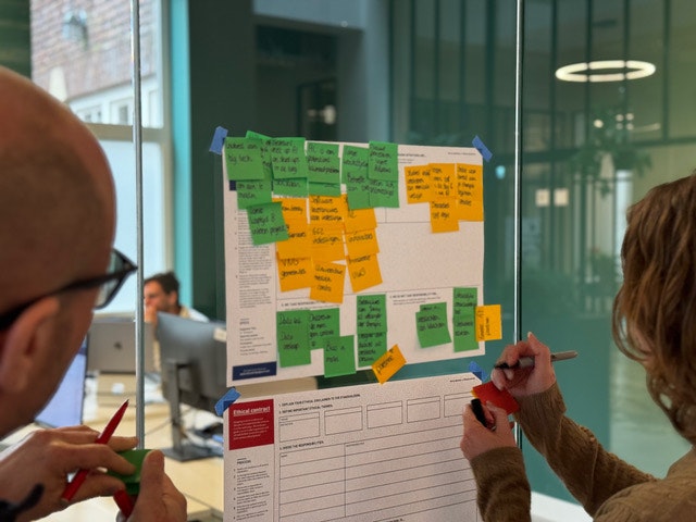 Partnerschap Samen een team vormen met je klant op basis van gelijkwaardigheid, ook Mario Grunitz van WeAreBrain zweert erbij. “Een samenwerking is een soort partnerschap: het voelt alleen goed als er wederzijds respect en vertrouwen is, ook als het over moeilijke ethische dilemma’s gaat. Iedereen zou verantwoordelijk moeten zijn voor ethische besluitvorming, maar verantwoordelijkheid alleen is niet genoeg, benadrukt hij. “Ethische dilemma's kunnen alleen adequaat worden aangepakt als er richting en ondersteuning is vanuit het management van het team zelf.” En als het team naast gelijkwaardig ook divers is, voegt hij toe. “Alleen dan krijg je verschillende perspectieven die je nodig hebt om een product verder te brengen of ethische dilemma’s echt op te lossen. Een blanke man merkt mogelijk minder snel de onbewuste bias van een AI-tool op dan iemand zonder de zeven vinkjes. En een copywriter komt weer andere dilemma’s tegen als een designer. Daarom hebben wij bij WeAreBrain ook een diverse groep medewerkers met verschillende nationaliteiten, geloven en expertises, en vieren we diverse culturele evenementen binnen ons bedrijf. Zo bieden we heel bewust ruimte aan verschillende perspectieven.”